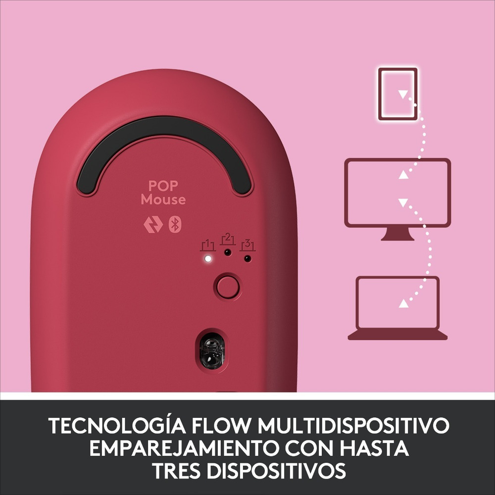Compacto y portátil, el POP Mouse se ajusta cómodamente en la mano y es fácil de llevar en bolsillo, bolsa de mano o estuche de computadora. La Tecnología SilentTouch reduce el ruido de los clics. La SmartWheel ofrece seguimiento de alta precisión y cambio a modo de scroll rápido. Conecta el POP Mouse con hasta 3 dispositivos simultáneamente y alterna entre ellos con el botón Easy-Switch o utiliza FLOW para moverte entre pantallas y transferir texto, documentos e imágenes.