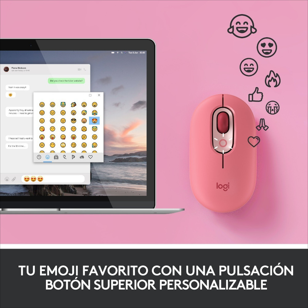 Exprésate con el Mouse POP, un dispositivo inalámbrico, silencioso y con opciones de personalización. Personaliza el botón superior con el Software Logitech, asignando tu emoji favorito o atajos como Captura de Pantalla, Silenciar Micrófono, Teclas de Medios y Voz a Texto.